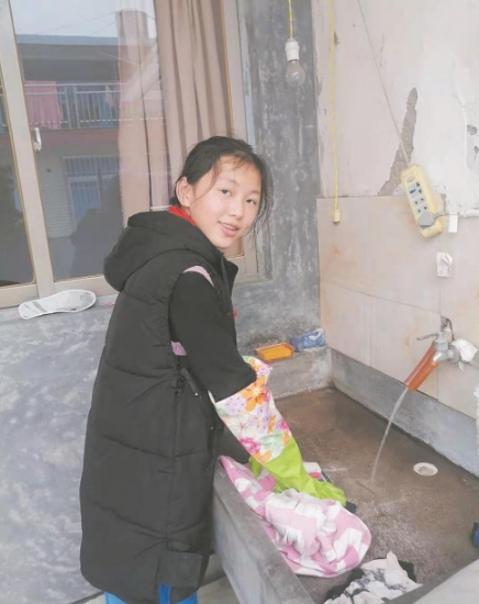 父母遠(yuǎn)赴外地打工,她與祖父祖母留守在家,時(shí)刻牢記自強(qiáng)自立。“自己的事情自己做”“家人的事情幫著做”。