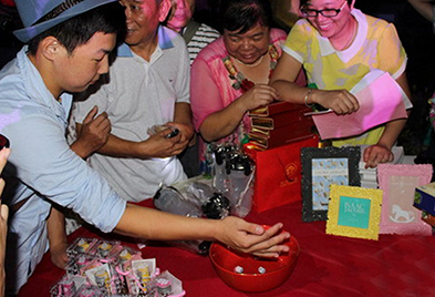 博餅時,桌上放置一個瓷碗,每人輪流抓取6個骰子,擲入碗中,發(fā)出叮叮當當?shù)拇囗?,看骰子的點數(shù)得餅。博餅過程充滿歡聲笑語,其樂融融的感覺很是溫馨。[詳細]