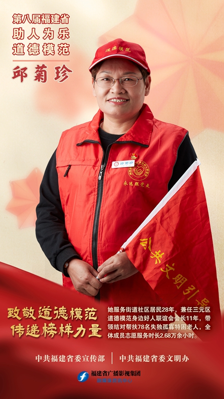 邱菊珍,1970年8月出生,三明市三元區(qū)列東街道社會治理辦工作人員。她服務(wù)街道社區(qū)居民28年,兼任三元區(qū)道德模范身邊好人聯(lián)誼會會長11年,帶領(lǐng)聯(lián)誼會長期開展“真情關(guān)愛”幫扶活動,結(jié)對幫扶78名失獨、孤寡、特困老人,全體成員志愿服務(wù)時長達(dá)2.68萬余小時。[詳細(xì)]