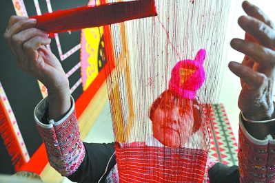 在竹里村一戶畬民家中,阿婆正紡織苧麻布。羅源是我省重要的畬族服裝保護(hù)基地。