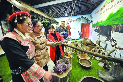 游客在霍口鄉(xiāng)畬族民俗館內(nèi)參觀,民俗文化成為一大旅游亮點。