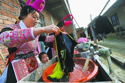 東南網(wǎng)1月7日訊(福建日報 記者 林輝 通訊員 劉其燚 洪映 圖)竹里村一戶村民在屋前洗衣服。2015年,6個畬族自然村共計1300多人的安全飲水難題得到了解決。