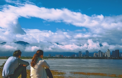 2015年12月10日,福州,冬葦蕭瑟,一對愛人坐在烏龍江畔曬太陽。何小軍 攝