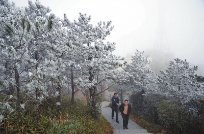 2015年12月16日,德化九仙山,市民們在霧松林里穿行。李宏圖 攝