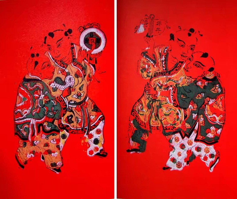 中國民間過年有張貼年畫、門神的習(xí)俗,年畫是最普及的藝術(shù)品之一。過年前,家家戶戶在室內(nèi)貼年畫,門上貼門神,以祝愿新年吉慶,驅(qū)兇迎祥。據(jù)介紹,《年年添丁》圖畫中兩嬉戲童子,手捧壽桃形花燈,燈上寫著“年年添丁”字樣?!度杖者M(jìn)財(cái)》表現(xiàn)兩童子手捧銅錢和元寶,寓意多多發(fā)財(cái)?!盁襞c丁在閩南語中是諧音,丁就是人丁的意思。”顏仕國表示,閩南有這樣的風(fēng)俗,就是娘家在新年時(shí)為出嫁之女送燈。